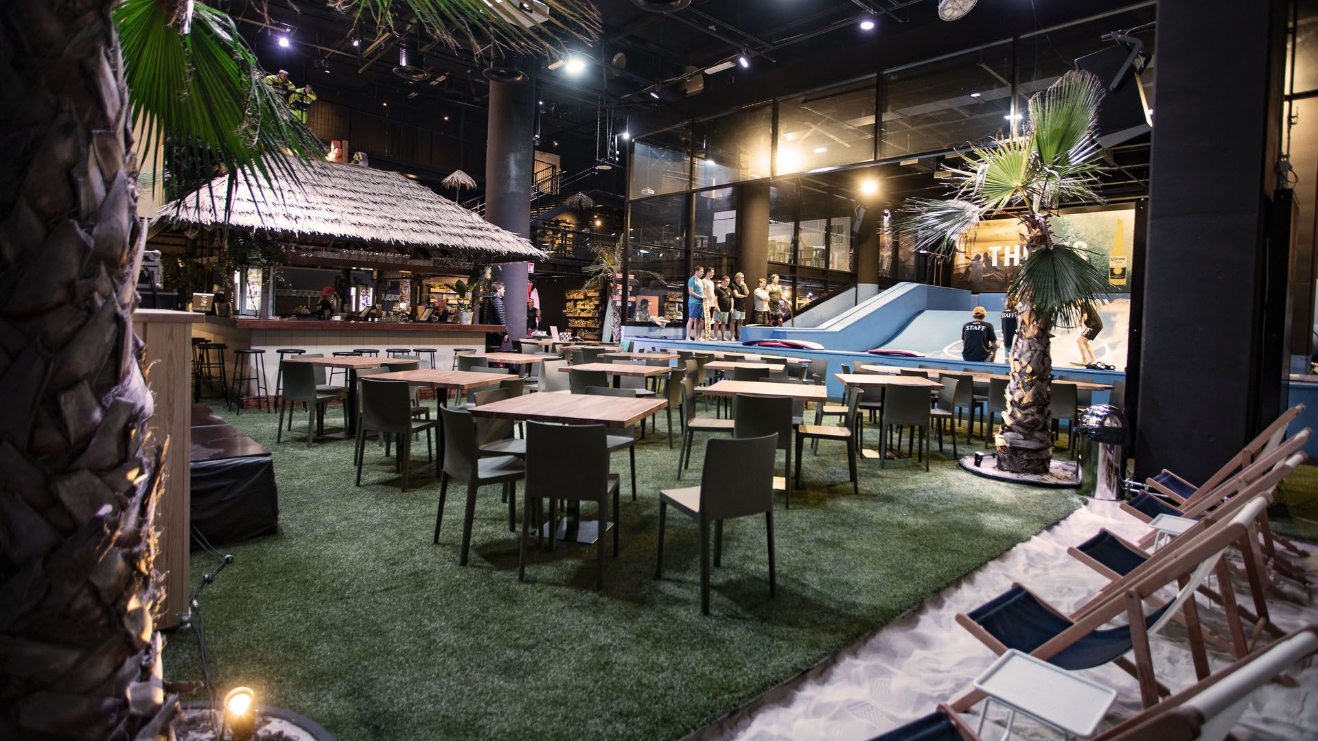 Oma synttärihuone, tropiikin lämpö, hiekka-alue rantapeleineen, ruokatarjoilut ja sisäsurffaus pitävät synttärivieraat tyytyväisinä tuntikaupalla. Surffaamaan mahtuu 1-20 vähintään 107 cm pituista lasta.