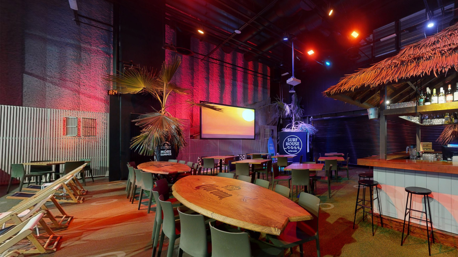 Surf Housessa on useita erikokoisia tiloja, joissa voi viettää aikaa oman porukan parissa. Tilaa on jopa 500 henkilölle.